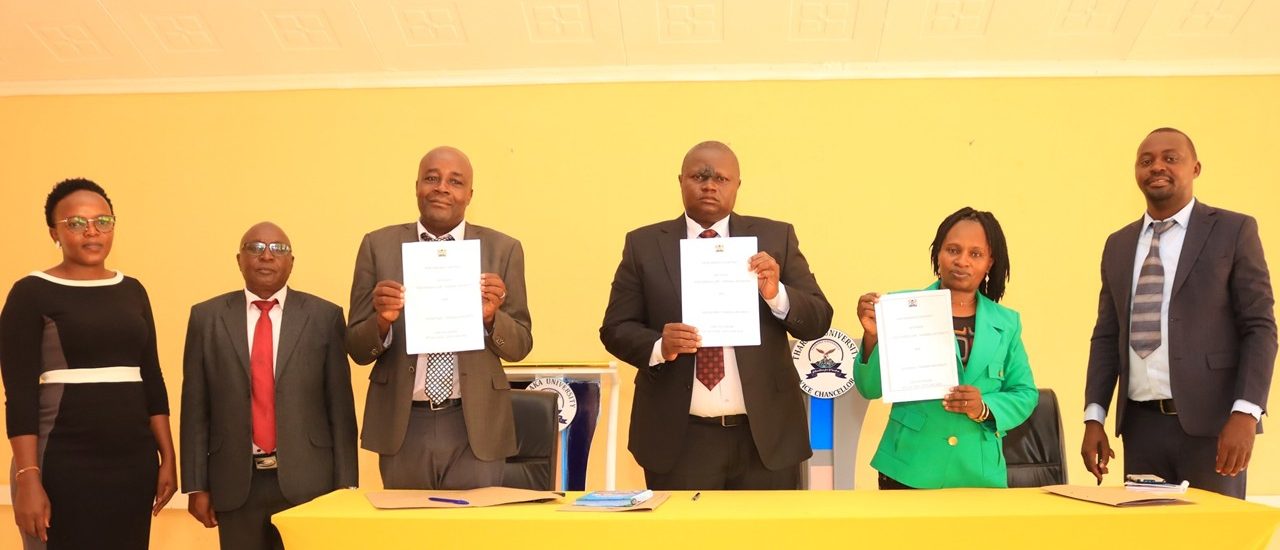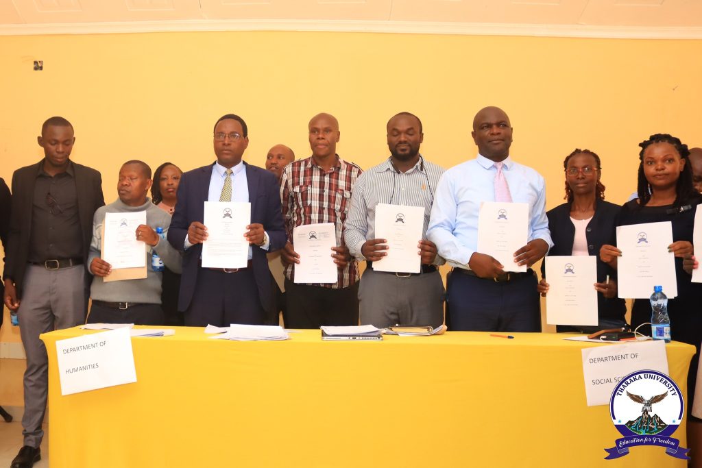 Tharaka University (TUN) held its annual Performance Contract (PC) signing ceremony. The event was led by the Vice-Chancellor & CEO, Prof. Peter K. Muriungi. Top management, including Deputy Vice Chancellor Prof. Collins Miruka (AFP&D) and Prof. Veronica Nyaga -Academics Research and Student Affairs , Registrars from both divisions, Deans, Directors, CoDs, HoDs, and both academic and administrative staff, signed the 2025/2026 Performance Contract (PC).