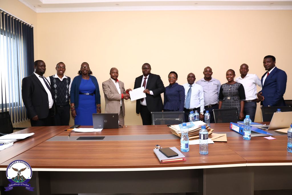 The Chairman of the Council and chair of the meeting, Prof. Peter Keiyoro, affirmed that the exercise is not only a compliance issue but an exercise to deliberately improve for better service delivery. The evaluation aimed to assess institutional performance and compliance with set national targets in the just-completed financial year. During the exercise, the officers acknowledged TUN for its compliance with the national guidelines and recognition for being the best in the previous year. The team also invited areas of collaboration between the Ministry and Tharaka University in events, training, workshops, and joint research papers.