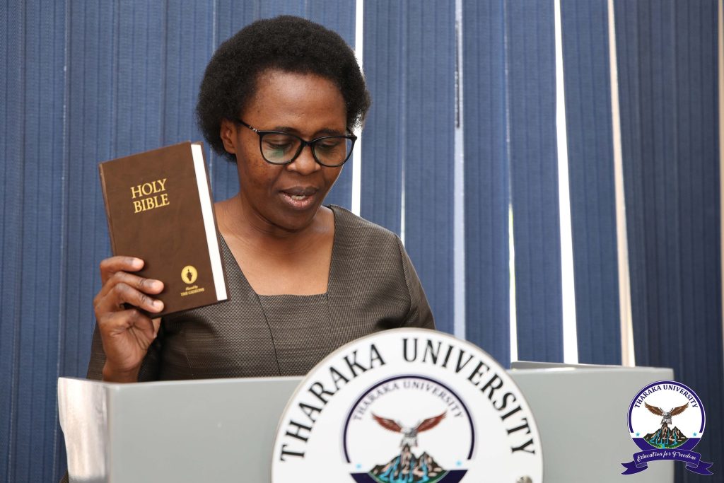 Addressing the gathering, the PS commended Tharaka University as one of the fastest-growing universities in Kenya, citing notable milestones achieved within just five years since being chartered in 2022, including infrastructure expansion and steady growth in student enrolment. She urged both the Council and Management to embrace teamwork, uphold integrity, and remain focused on delivering quality higher education. Dr. Inyangala also expressed confidence in the composition of the new Council, describing it as a strong and diverse team capable of steering the University towards achieving its mission.