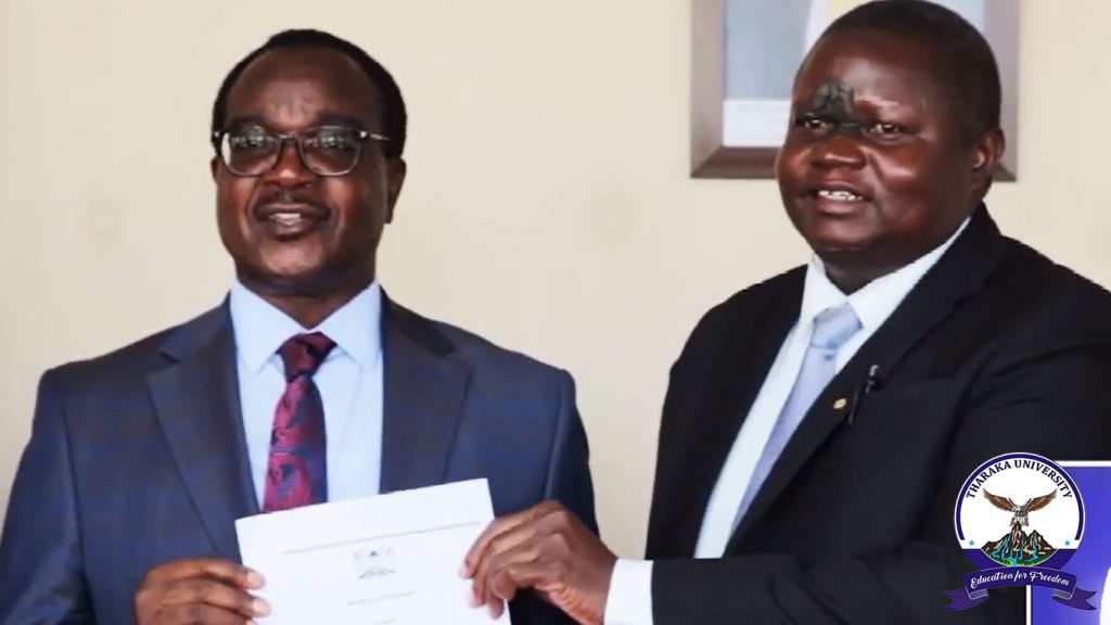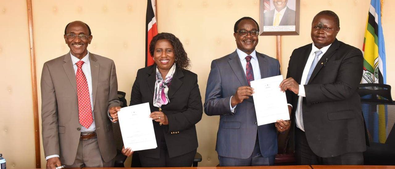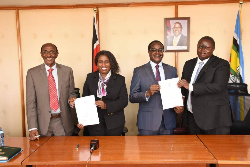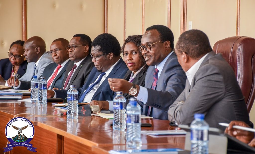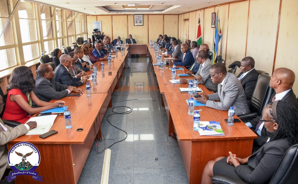 Tharaka University Vice-Chancellor and CEO, Prof. Peter K. Muriungi, joined the Cabinet Secretary for Education, Hon. Julius Migos Ogamba, Principal Secretary for Higher Education, Dr. Beatrice Muganda Inyangala, University Council Chairs, and Vice-Chancellors from 19 public universities at Jogoo House “B” for the signing of Implementation Agreements for the Higher Education, Science and Technology (HEST) Phase II Project. TUN Council Chair, Prof. Peter Keiyoro, was also present. The five-year flagship Government project focuses on strengthening STEM education through investments in infrastructure, equipment, research capacity, and governance systems to prepare universities for future-oriented training and innovation. Following the engagement, Tharaka University is expected to receive support for infrastructure development. According to TUN Vice-Chancellor, Prof. Peter K. Muriungi, the funding will be used to expand the TUN Science Tuition Block and construct seven new, modern laboratories to enhance practical teaching and research capabilities. In addition, the University is actively exploring complementary pathways to make Open, Distance and e-Learning (ODeL) more workable for STEM courses by investing in modern laboratories and simulation-enabled facilities that can support virtual experiments and remote practical learning. These efforts position TUN to be ready for the first Competency-Based Education (CBE) university cohort in 2029, as the University continues partnering strategically to expand access to quality, future-ready higher education.