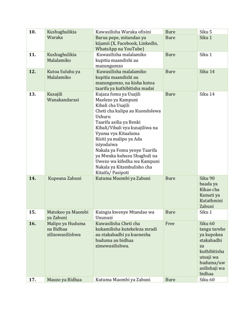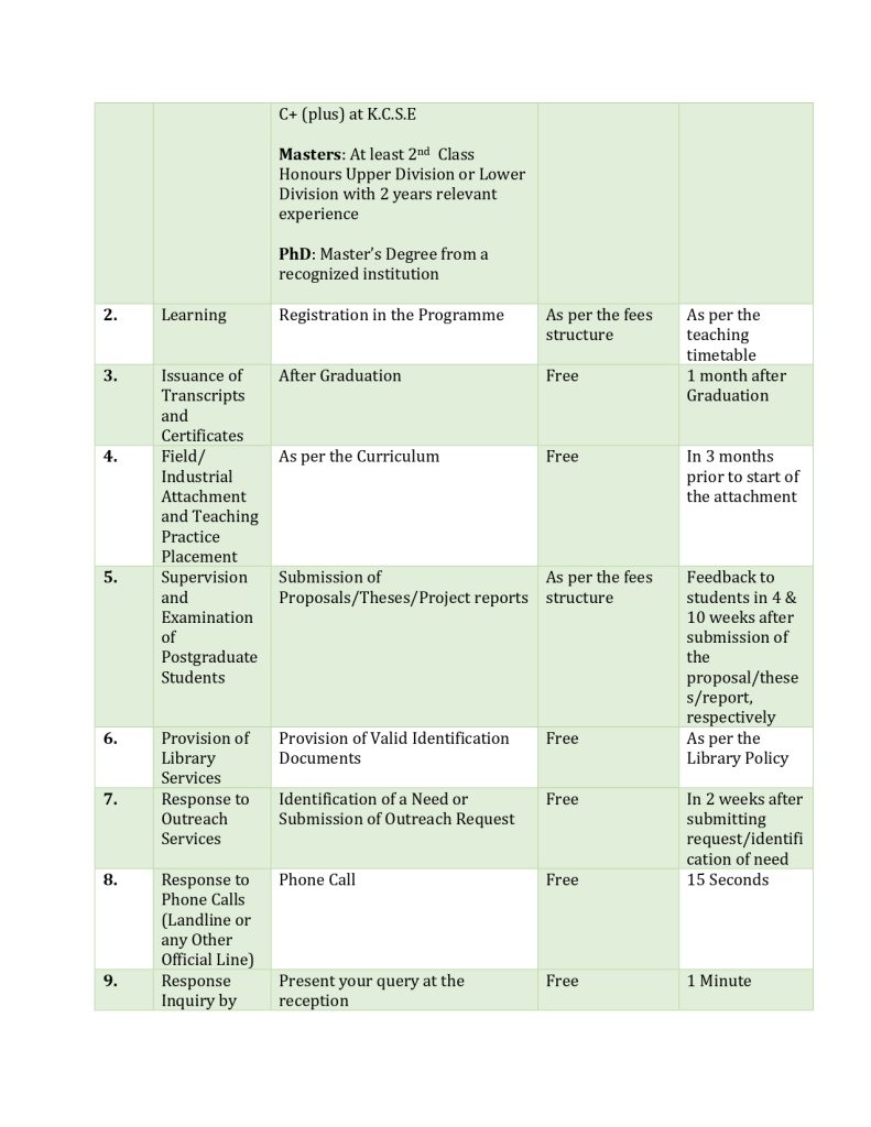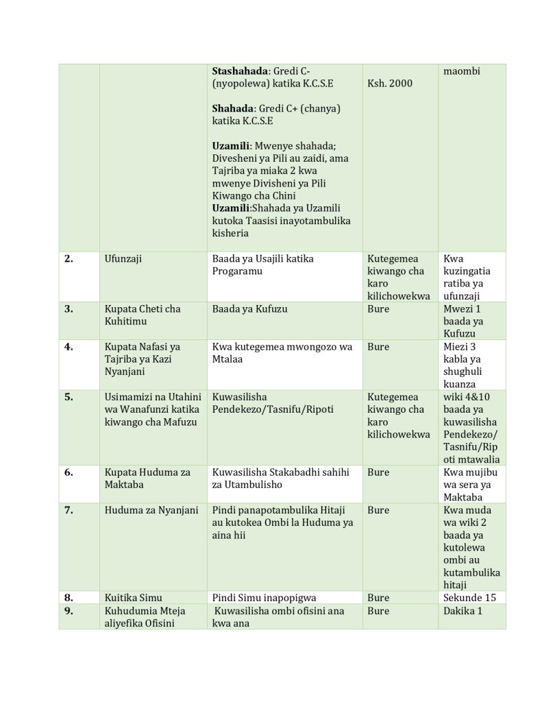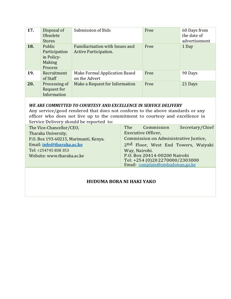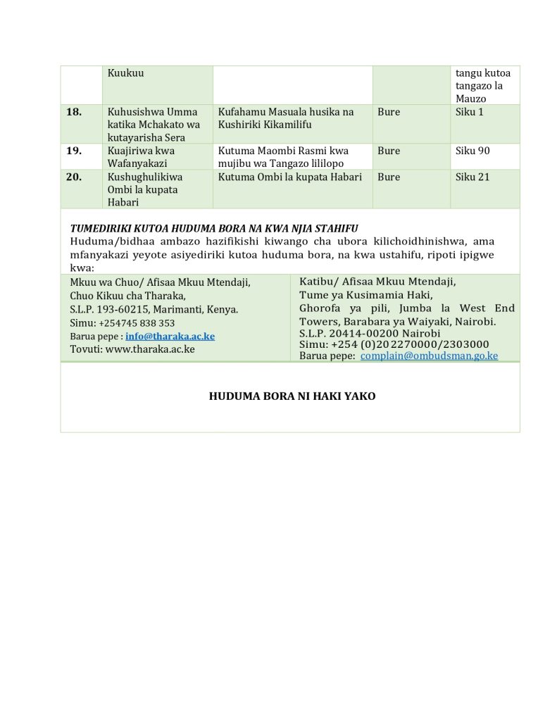 Kiswahili Service Charter pdf